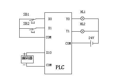 常用的旋轉編碼器有5條引線,其中3條是脈沖輸出線,1條是COM端線,1條是電源線(OC門輸出型)。電源可以是外接電源,也可直接使用PLC的電源。電源“-”端要與編碼器的COM端連接,“+ ”與編碼器的電源端連接。編碼器的COM端與PLC輸入COM端連接,ABZ兩相脈沖輸出線直接與PLC的輸入端連接,AB為相差90度的脈沖。旋轉編碼器還有一條屏蔽線,使用時要將屏蔽線接地,提高抗干擾性。